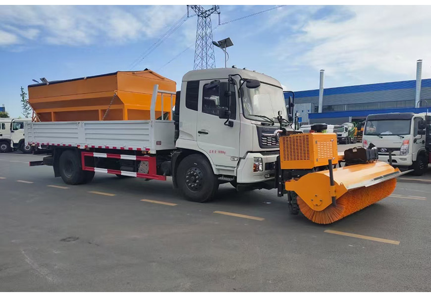 | 上裝配置 | 整體避障除雪鏟,夜間工作燈,車取力重型除雪鏟(左右雙液壓驅動)可搭配8立方或者10立方融雪撒布機(獨立柴油動力,鏈條刮板輸送,采用V型料倉,頂部帶防雨罩,折疊式不銹鋼撒布盤)3-3.5米雪鏟、3-3.5米雪鏟及撒布機均采用集成按鍵駕駛室操作。 | ||