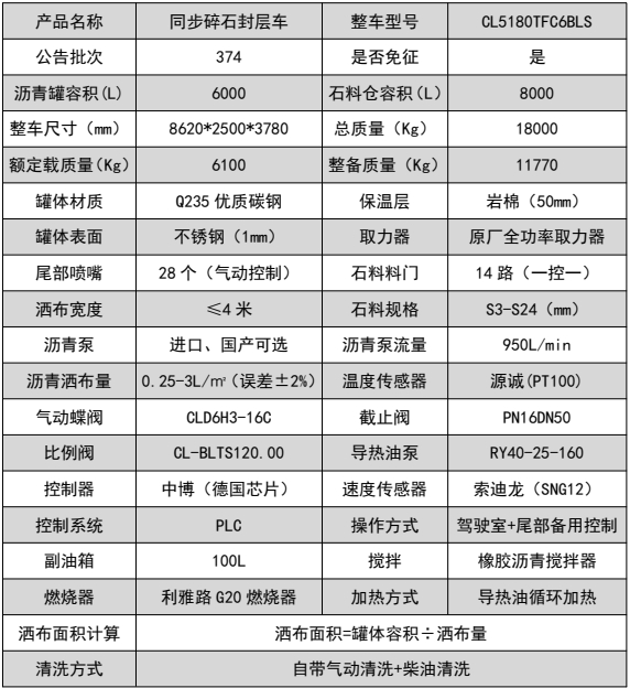 ??????湖北程力汽車:程力CL5180TFC6BLS型陜汽德龍單橋瀝青碎石同步封層車產品型號及參數配置,程力CL5180TFC6BLS型陜汽德龍單橋瀝青碎石同步封層車高清圖片,程力汽車系列程力CL5180TFC6BLS型陜汽德龍單橋瀝青碎石同步封層車最新報價請撥打客服熱線。車輛主要配置 產品商標 程力牌 公告批次 389(擴展) 產品名稱 同步碎石封層車 產品型號 CL5180TFC6BLS 總質量(Kg) 18000 罐體容積(m3) 額定載質量(Kg) 6100,6035 外形尺寸(mm) 8620 × 2500 × 3780 整備質量...
